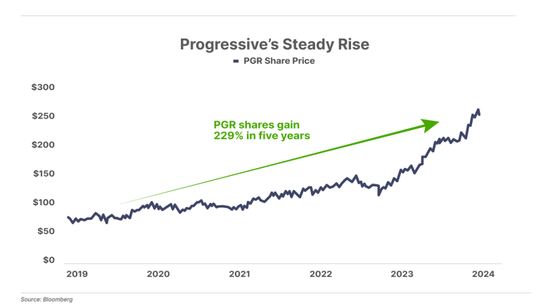 Progressive has been a leading pioneer of using technology to better understand and price risk. The result? They refer the customers they believe are higher risk to their competitors, while offering vastly lower rates to the people they believe will never file a claim. That strategy has led to both incredible underwriting results and huge growth in market share. Since recommending Progressive less than a year and a half ago, it’s almost doubled.