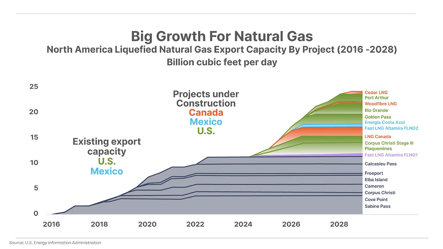 2. Making American energy exports great again. One of Trump’s other first orders of business on Monday was signing an executive order lifting former President Joe Biden’s freeze on permits for new U.S. liquefied natural gas (“LNG”) export terminals. The regulatory green light should accelerate America’s ongoing gas export boom, with U.S. LNG export capacity on track to double by 2028. This should add more upside to America’s leading natural-gas producers and LNG exporters, which have recently broken out to new 52-week highs across the board.