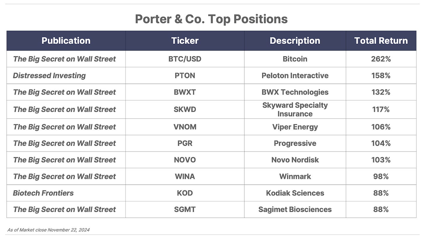 Important announcement: Due to the Thanksgiving holiday this week, there will be a few changes to our publishing schedule. Though you’ll get Porter’s Daily Journal as regularly scheduled on Wednesday and Friday, you’ll receive The Big Secret on Wall Street a day early, at 4 pm ET on Wednesday. Subscribers will also get their Investment Chronicles and Distressed Investing reports on Wednesday, as the Porter & Co. team is taking Thursday and Friday off to be with our families.