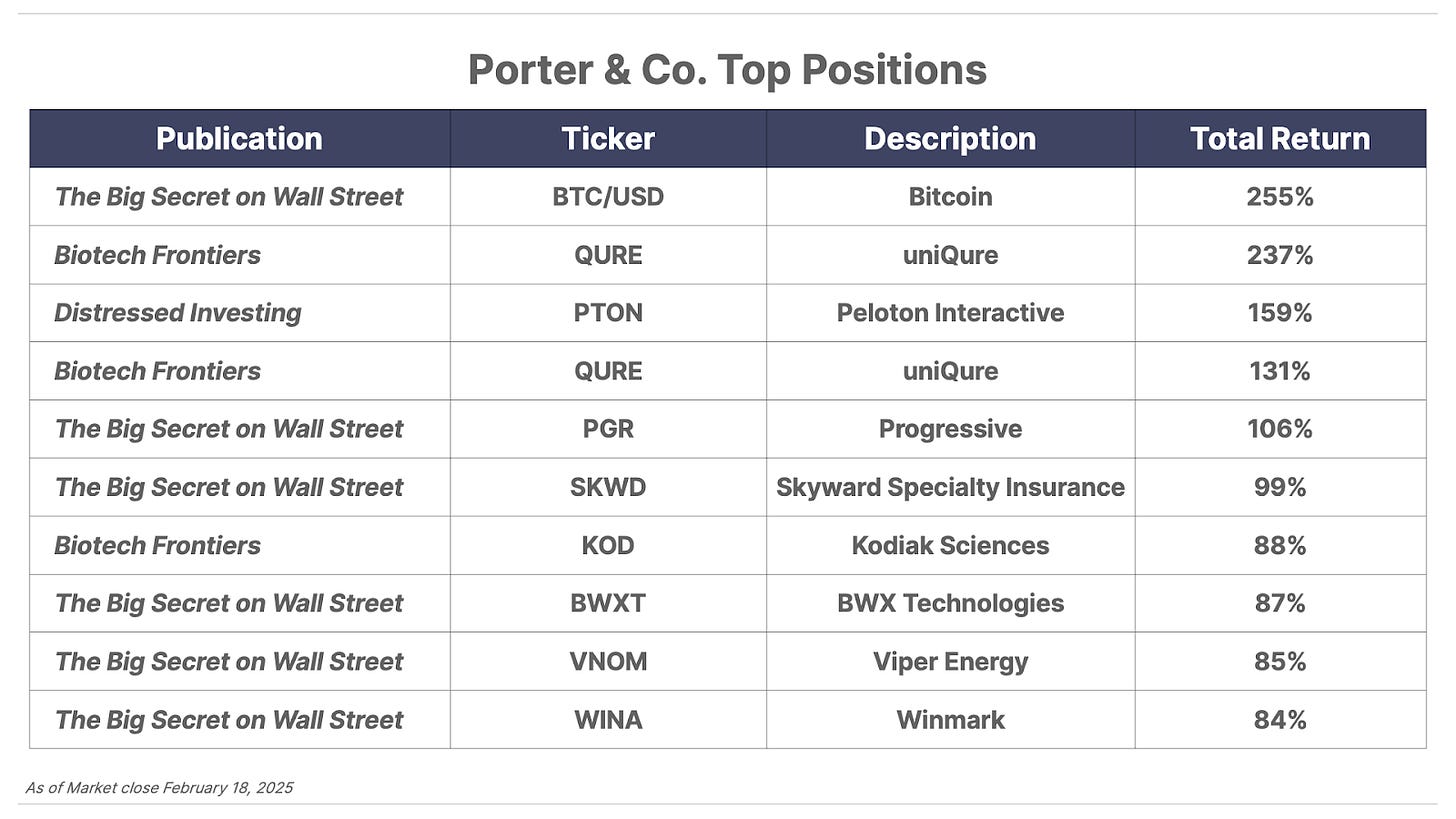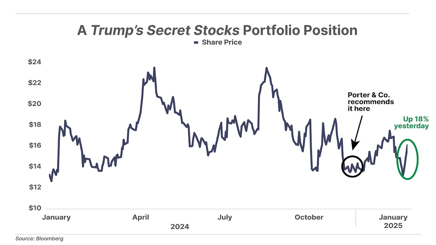 Michael Burry – the hedge fund manager of The Big Short fame who made billions on the subprime-mortgage crisis of 2008-2010 – went big into one of our Trump’s Secret Stocks portfolio positions… a company co-founded by someone close to Trump that’s focused on using technology to make healthcare more affordable. And yesterday’s disclosure of Burry’s purchase late last year pushed the shares of this stock up 18% for the day. (Partner Pass members read about this yesterday on our Direct Line service.) If you’re a Big Secret subscriber (or Partner Pass member), you can read our Trump’s Secret Stocks report here… if you’re not and want to learn more, go here.