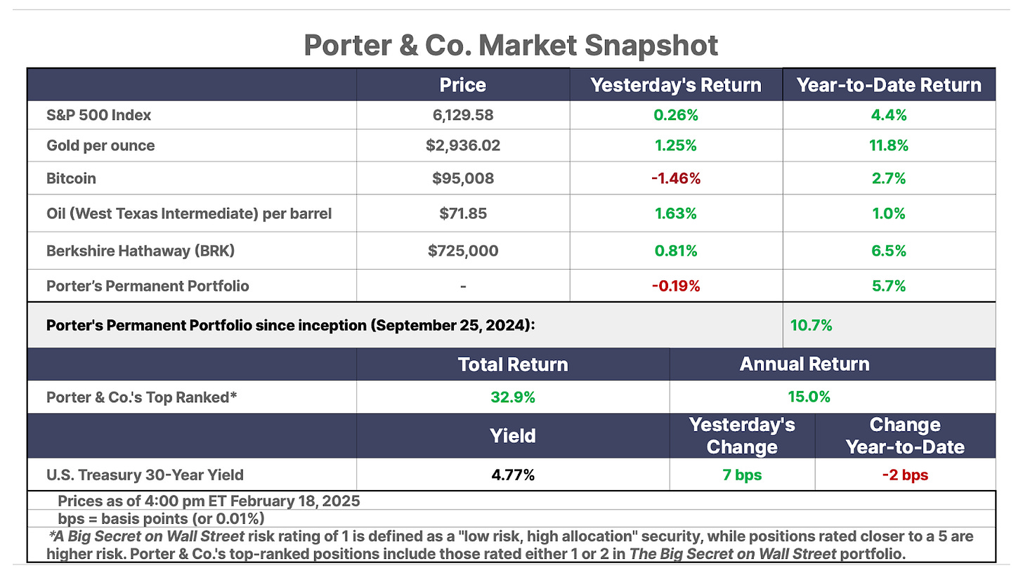 This is Porter & Co.’s free e-letter, the Daily Journal. Paid-up members can access their subscriber materials, including our latest recommendations and our “3 Best Buys” for our different portfolios, by going here. Recent issues of the Daily Journal are here.