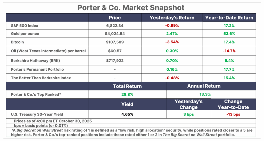 This is Porter’s Daily Journal, a free e-letter from Porter & Co. that provides unfiltered insights on markets, the economy, and life to help readers become better investors. It includes weekday editions and two weekend editions… and is free to all subscribers.