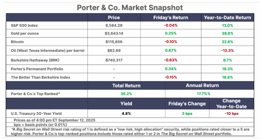 This is Porter’s Daily Journal, a free e-letter from Porter & Co. that provides unfiltered insights on markets, the economy, and life to help readers become better investors. It includes weekday editions and two weekend editions… and is free to all subscribers.