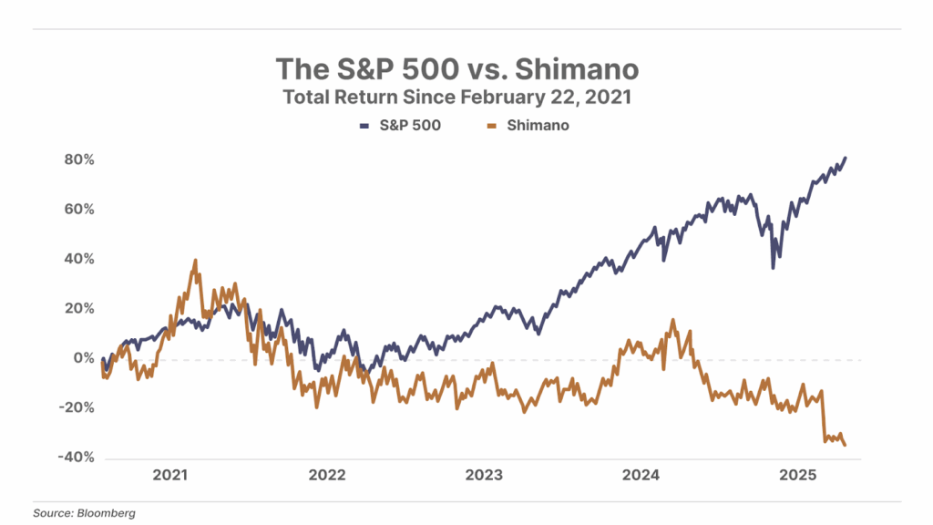 The results speak for itself: Our $10 million investment in Shimano is now worth $7.6 million.