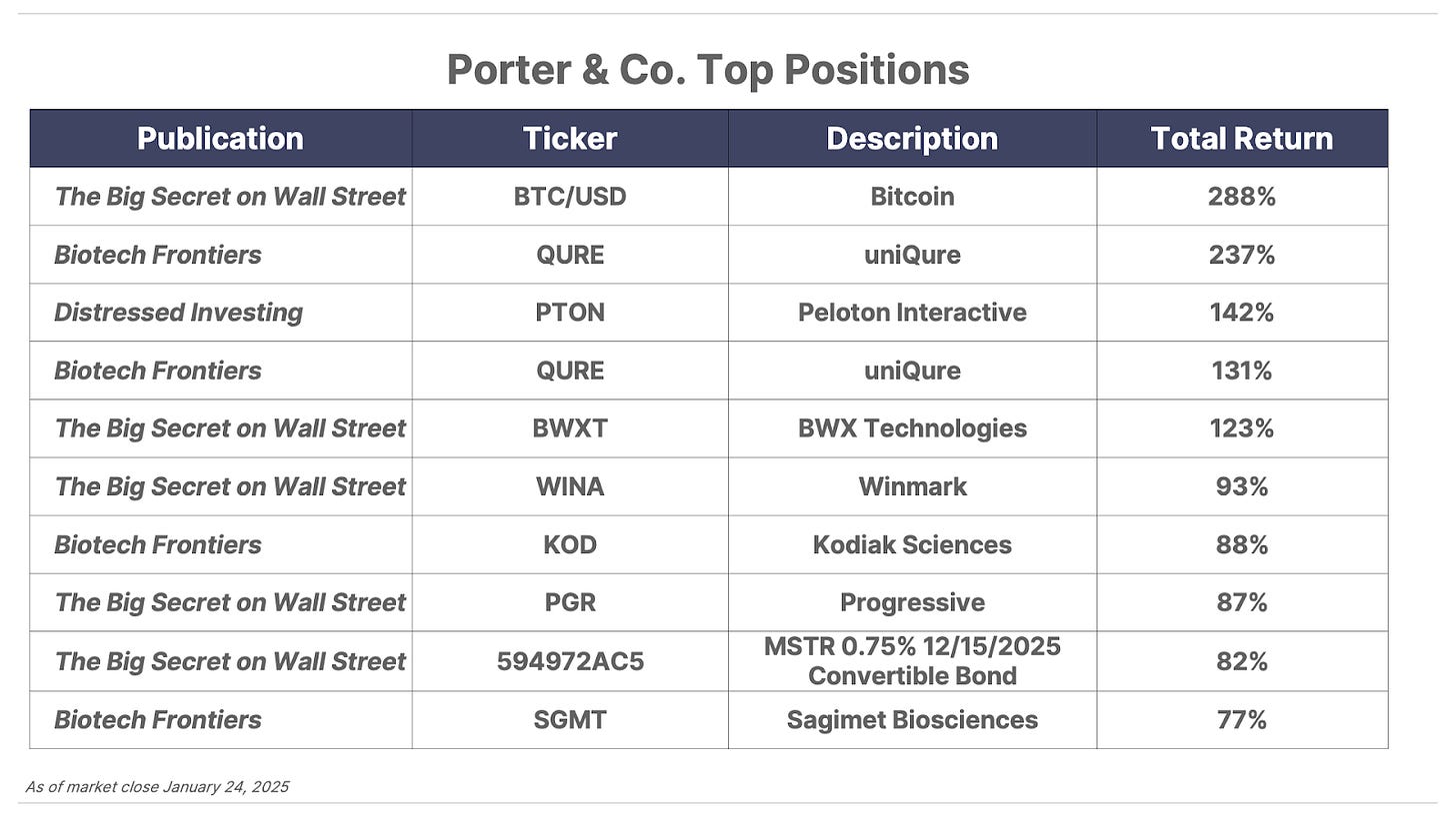 And, on Wednesday, expect something special in your inbox… Our Spotlight, where we highlight an analyst or service outside of Porter & Co. that we think is worthy of your attention – and we provide research that’s usually reserved for that analyst’s subscribers – normally comes out on Tuesday. (See here for our most recent Spotlight.) But this week we have a special Spotlight release… and it has to wait until Wednesday. So stay tuned…