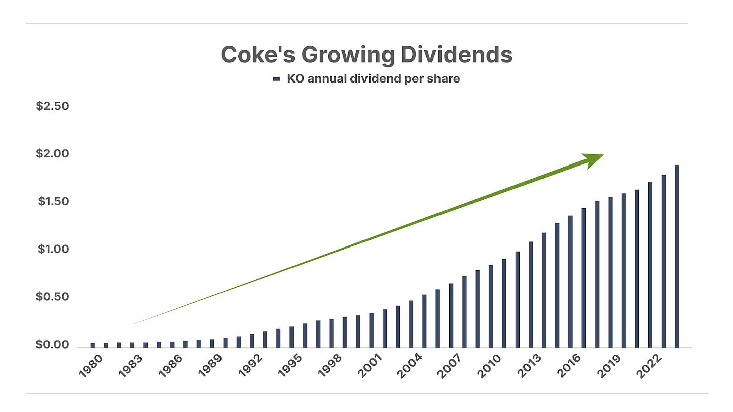 Owning Coke is like having a 20-year reverse mortgage, except, even after the house has been paid for, the disbursements continue to increase. Every. Single. Year.
