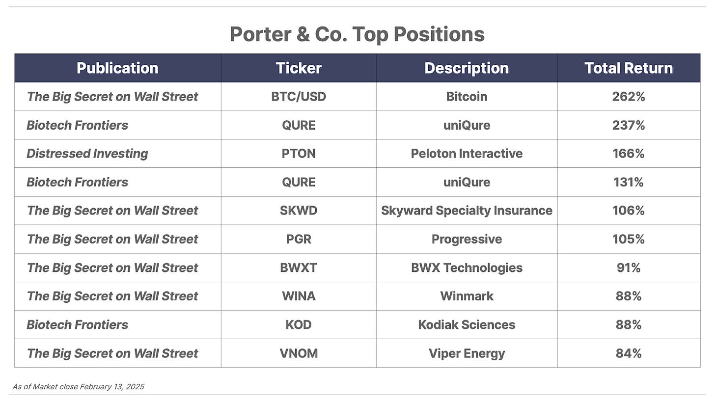 Partner Pass members… be sure to check out the Direct Line. There you’ll find analysis of breaking news on positions… buy and sell alerts… details of when a Porter & Co. analyst “pounds the table” on a stock… updates on the latest publications… and much more. (Just yesterday, we posted the latest on one position in the Biotech Frontiers portfolio, reflecting Erez’s latest thinking… be sure to check it out.) And if you’re not a Partner Pass member, you can learn more about the benefits by going here, or calling Lance James, our Director of Customer Care, at 888-610-8895 or internationally at +1 443-815-4447.