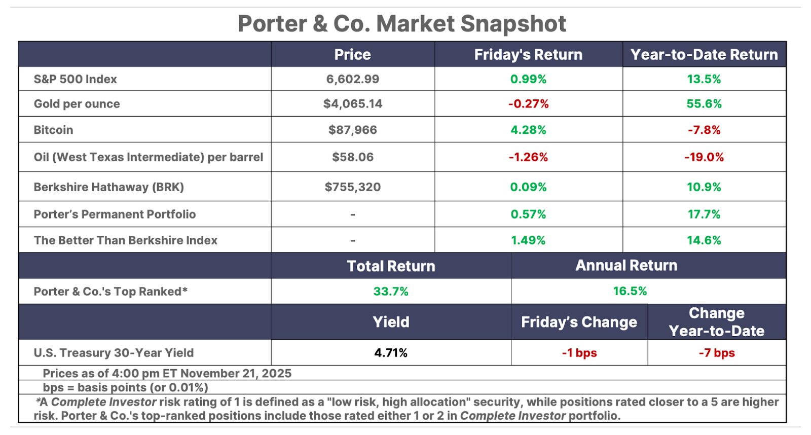 This is Porter’s Daily Journal, a free e-letter from Porter & Co. that provides unfiltered insights on markets, the economy, and life to help readers become better investors. It includes weekday editions and two weekend editions… and is free to all subscribers.