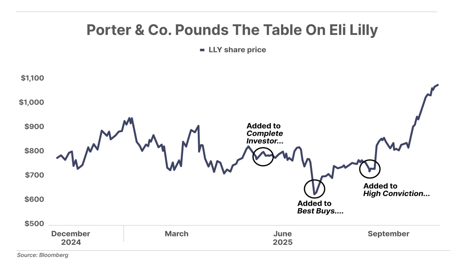 Porter’s been pounding the table on Eli Lilly for months, and we continue to believe this is a forever stock. We plan to hold it indefinitely – and let shares compound.